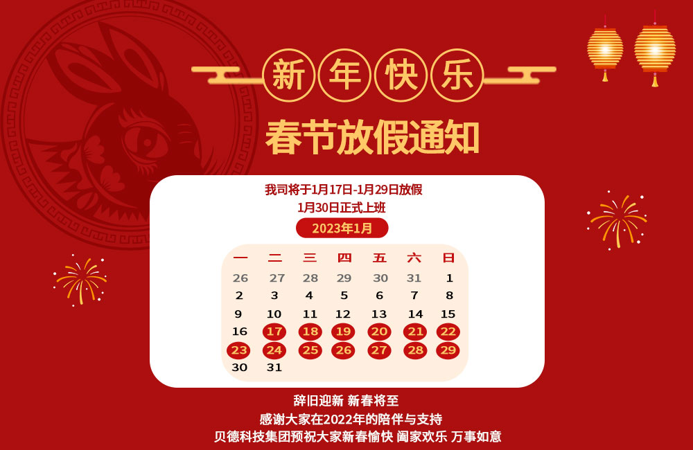 2023年春節將至,貝德科技集團有限公司在這里祝大家新年快樂,闔家幸福,萬事如意!
