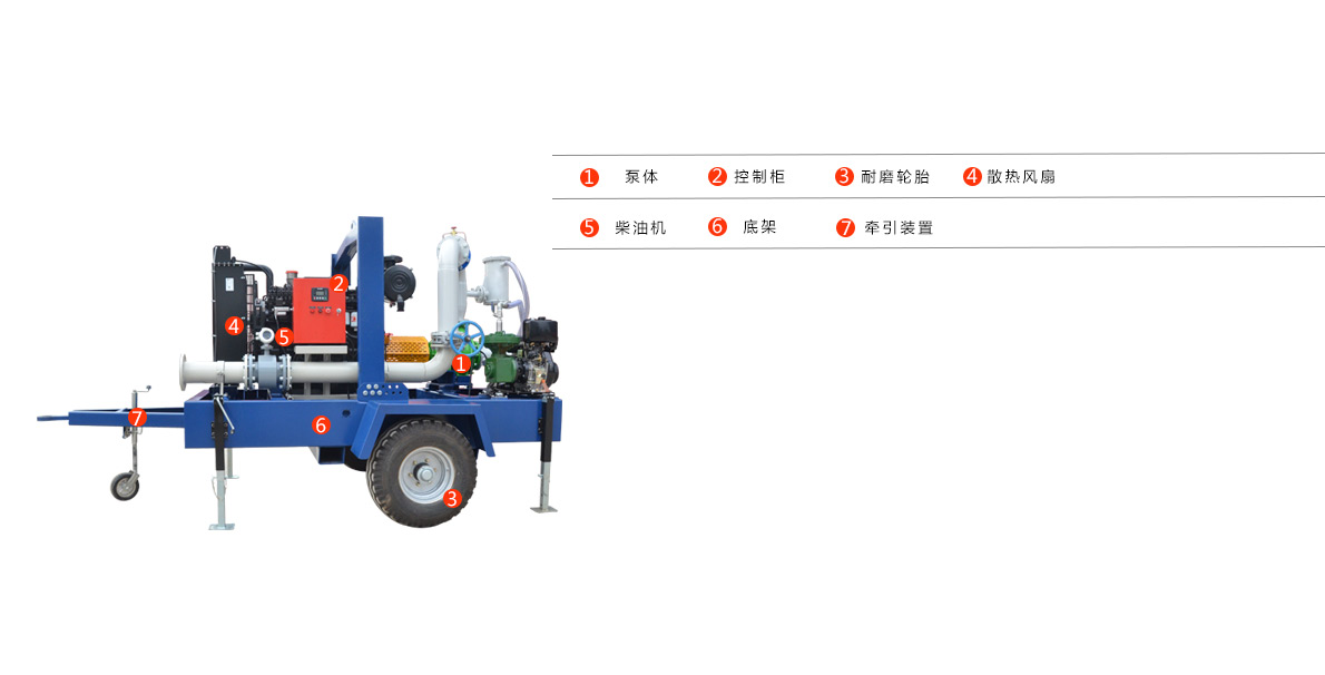 拖車式移動泵車集混流泵和無堵塞排污于一體,采用柴油機驅動軸向回流外混式,并通過泵體、葉輪流道的獨特設計,使用時不需要安裝底閥和灌引水。主要用于農田灌溉、農村灌溉、農業灌溉、排水泵站、雨水泵泵站、排灌排澇、防洪防汛、防洪排澇、抗旱減災等。