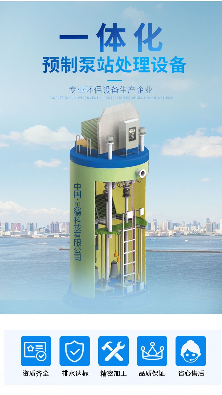 一體化預(yù)制式泵站是一款專為解決城市雨水收集和排澇以及城鎮(zhèn)污水提升而設(shè)計的新型污水處理設(shè)備。泵坑設(shè)計帶有一體化的排放連接。泵站為地埋式、泵站主體由泵站筒、潛水泵、耦合裝置、管道、閥門、液位傳感器、控制系統(tǒng)、粉碎型格柵和通風(fēng)系統(tǒng)等部件組成。是一種使用方便,質(zhì)量可靠,土建工作少,成本較低的新型一體化泵站設(shè)備,容積優(yōu)化是其顯著的特征,可以作為中小型混凝土泵站的替代品。
